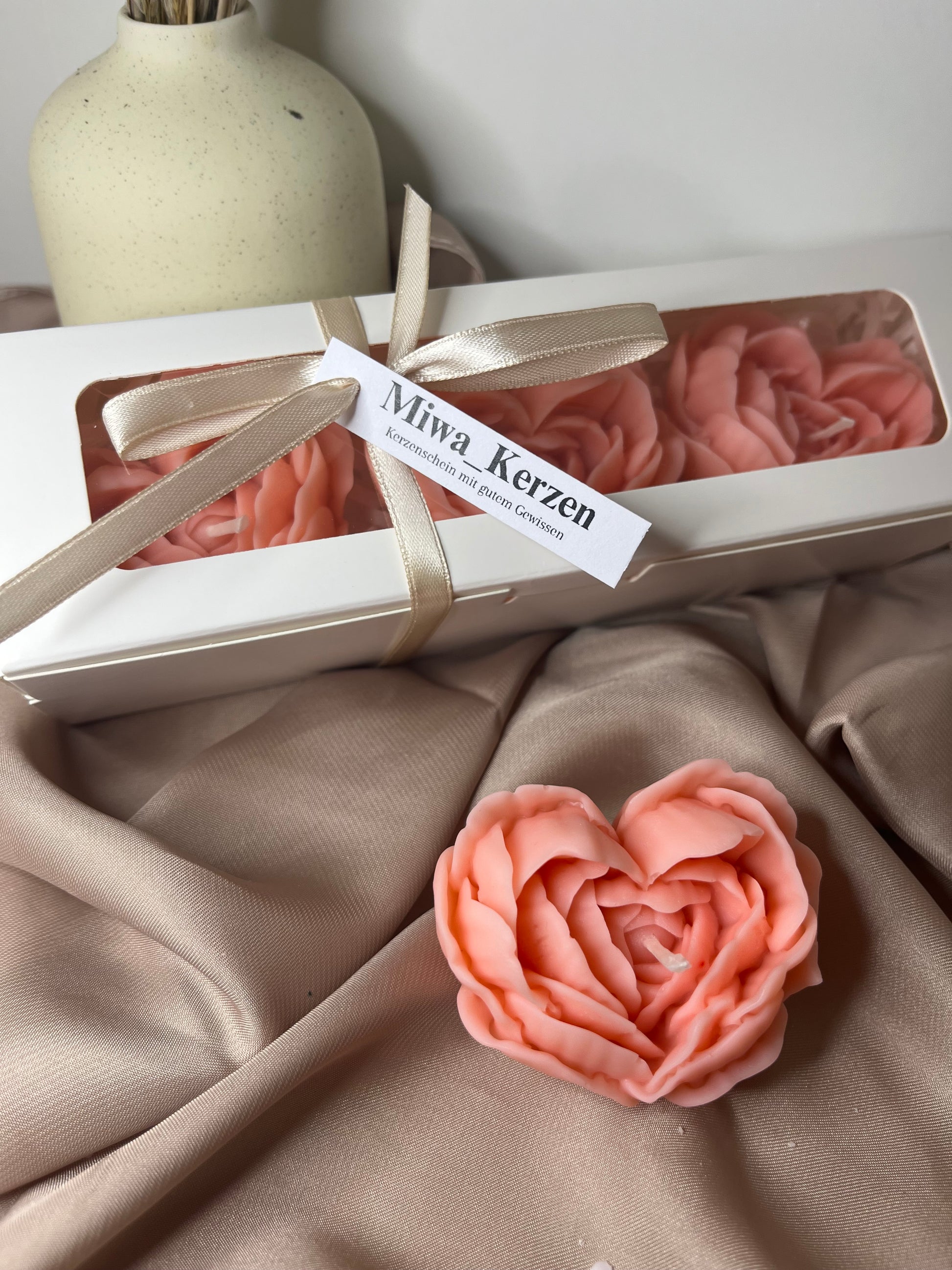 Da jede Kerze in liebevoller Handarbeit gefertigt wird, kann sie kleine Unvollkommenheiten aufweisen – jedes Stück ist ein Unikat.