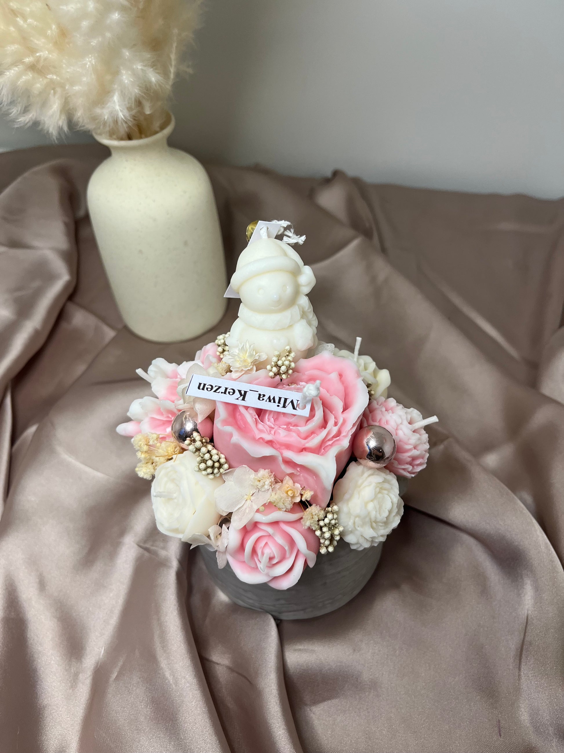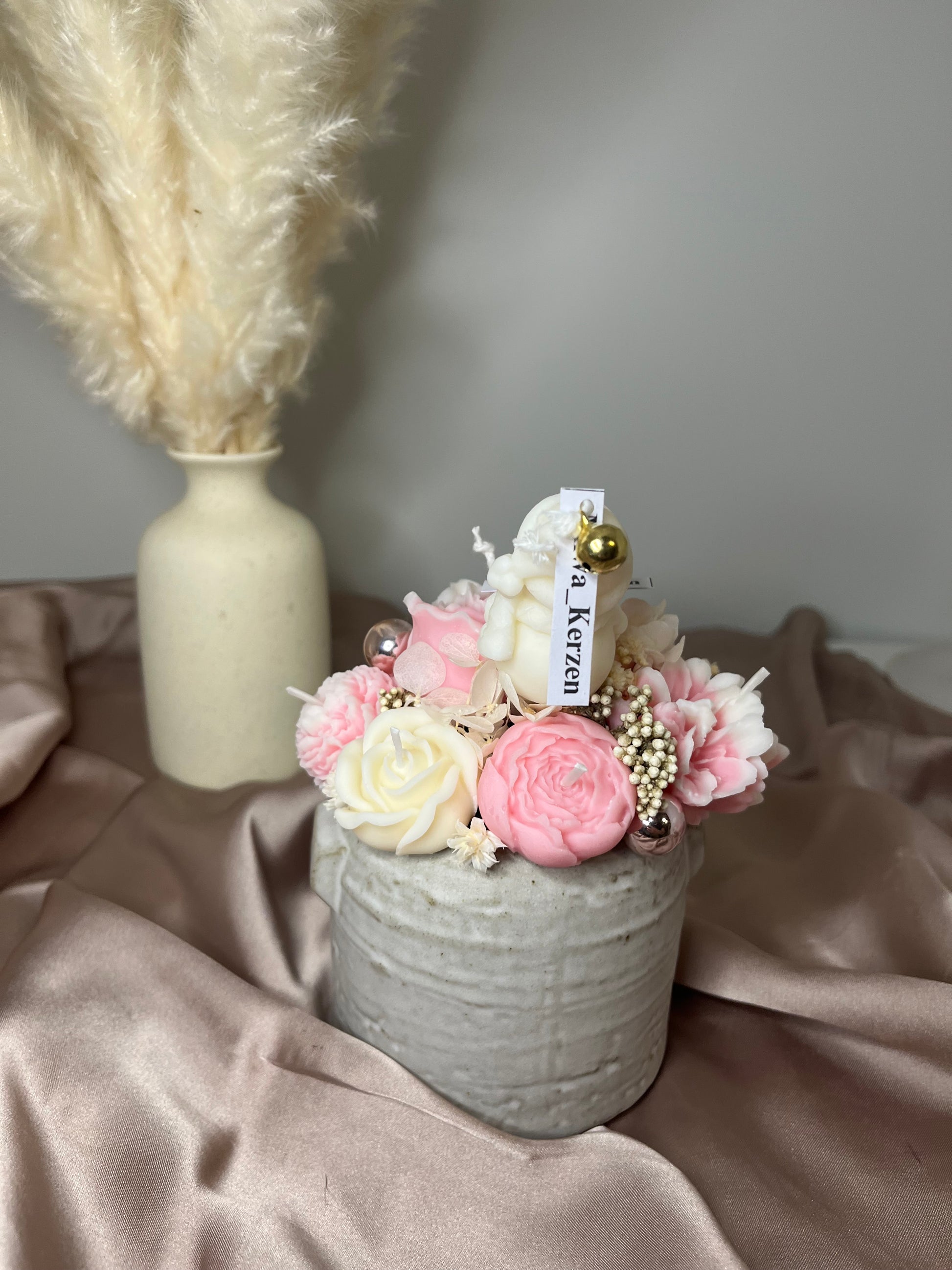 Da jede Kerze in liebevoller Handarbeit gefertigt wird, kann sie kleine Unvollkommenheiten aufweisen – jedes Stück ist ein Unikat.